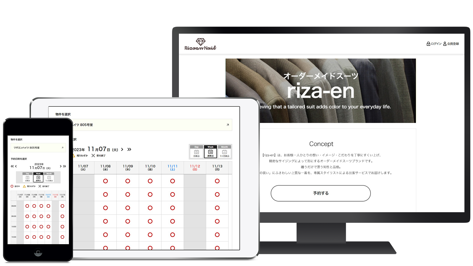 「リザエン」は、オーダーメイドやフィッティングの予約にぴったりの、かんたんに使える予約管理システムです。