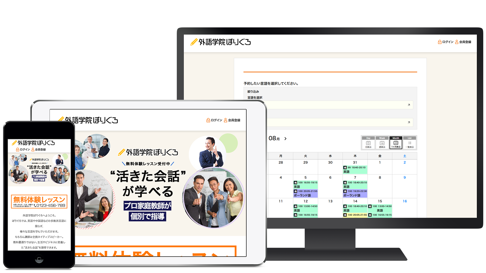 授業の予定はカレンダー画面から一目で確認でき、空いている時間に合わせてすぐに予約ができます。予定の変更やキャンセルにも柔軟に対応できるので、生徒さんごとのスケジュール管理がぐっと楽になります。