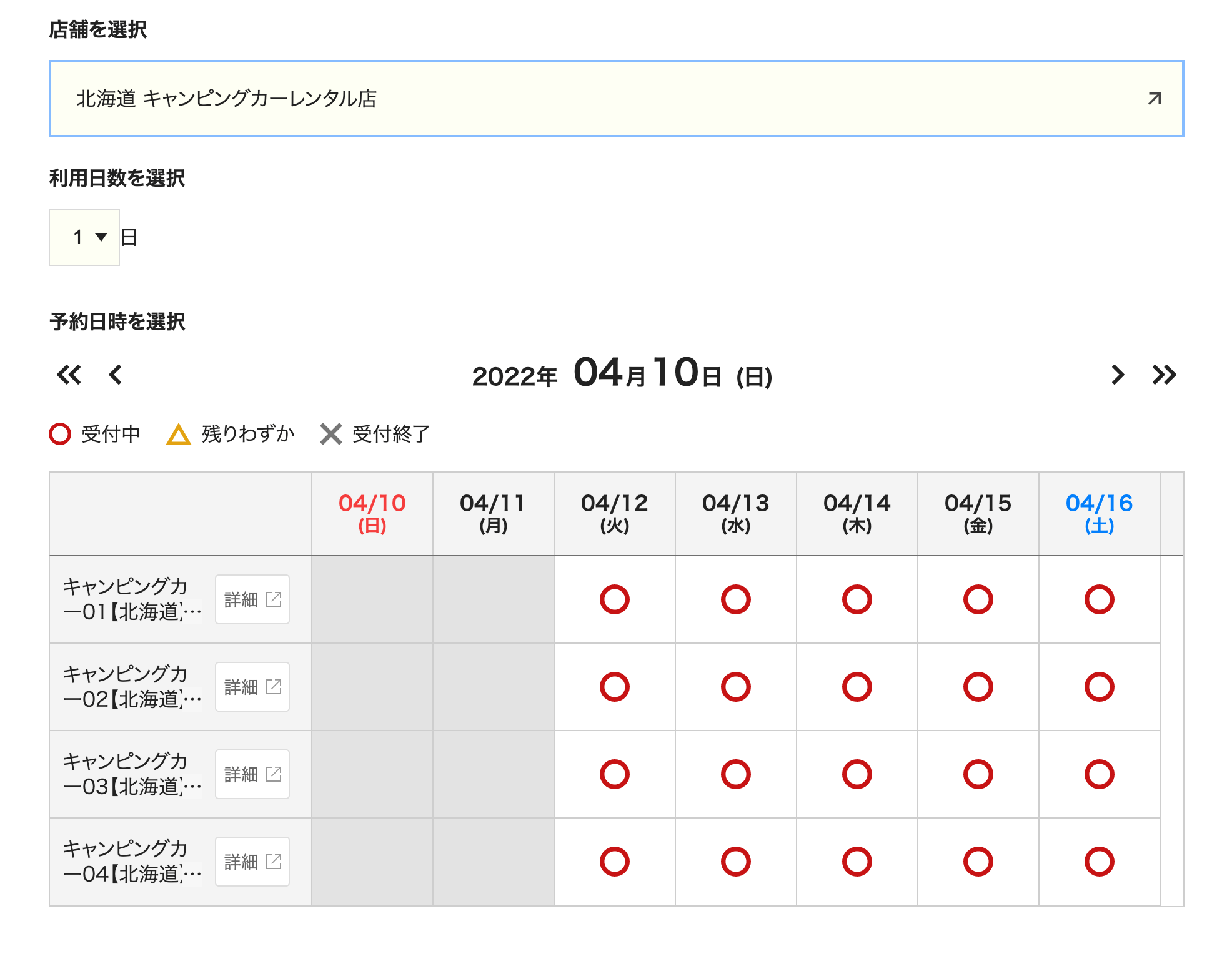 予約カレンダーより、派遣希望の地域や日時を選択し、空き状況を確認します。