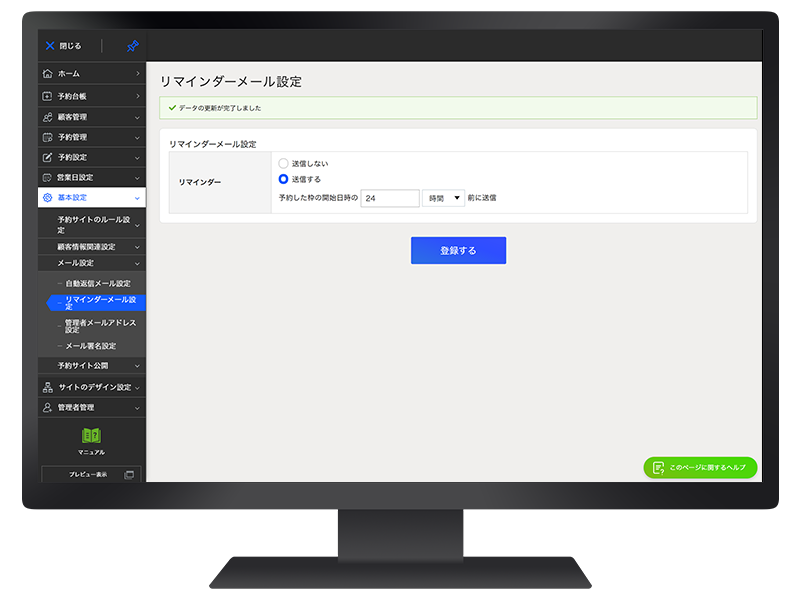 うっかり予約を忘れてしまうことがないように、予約の前にお知らせメールを自動送信。機会損失の発生を防ぎます。